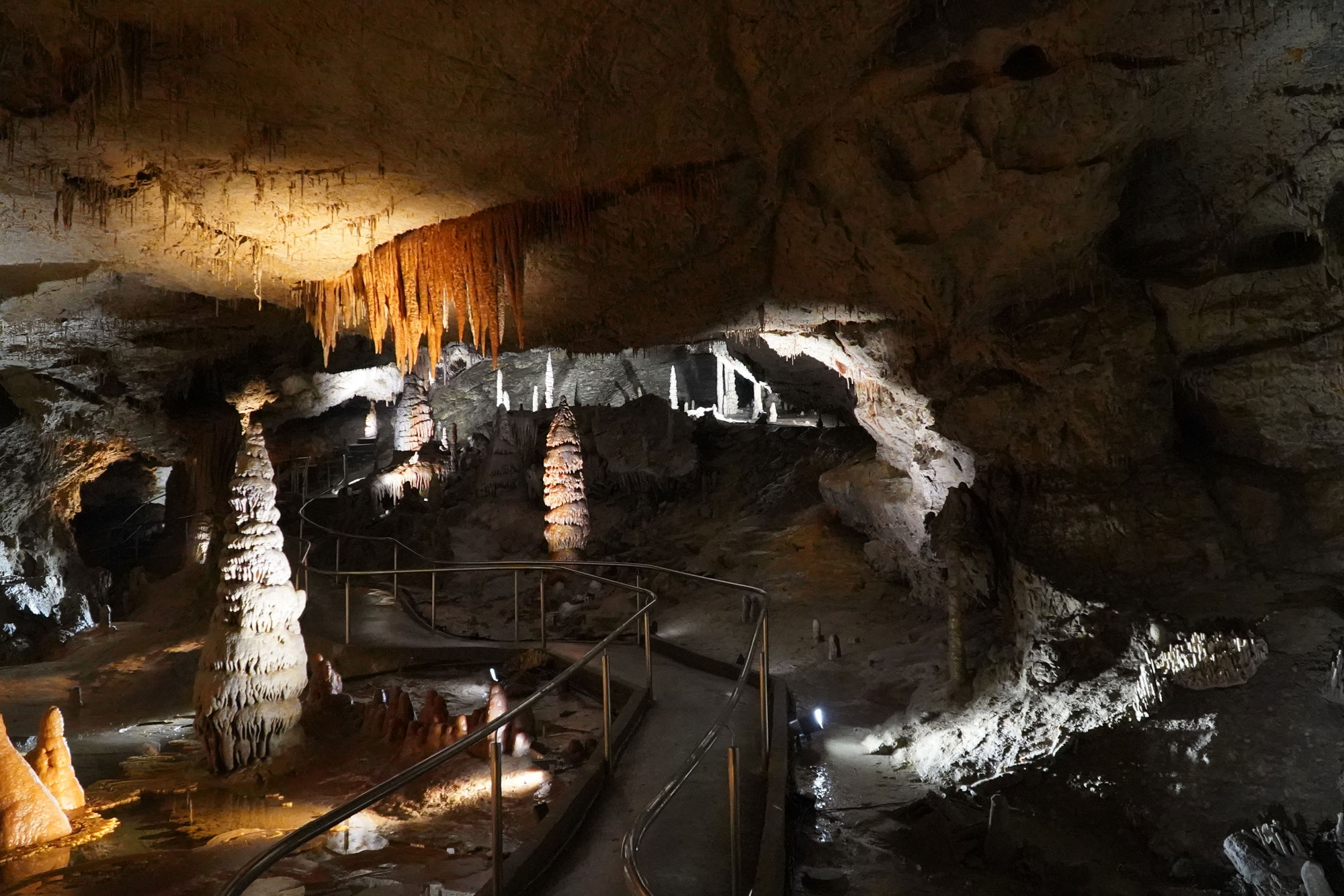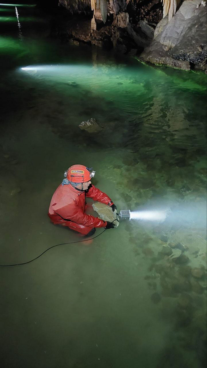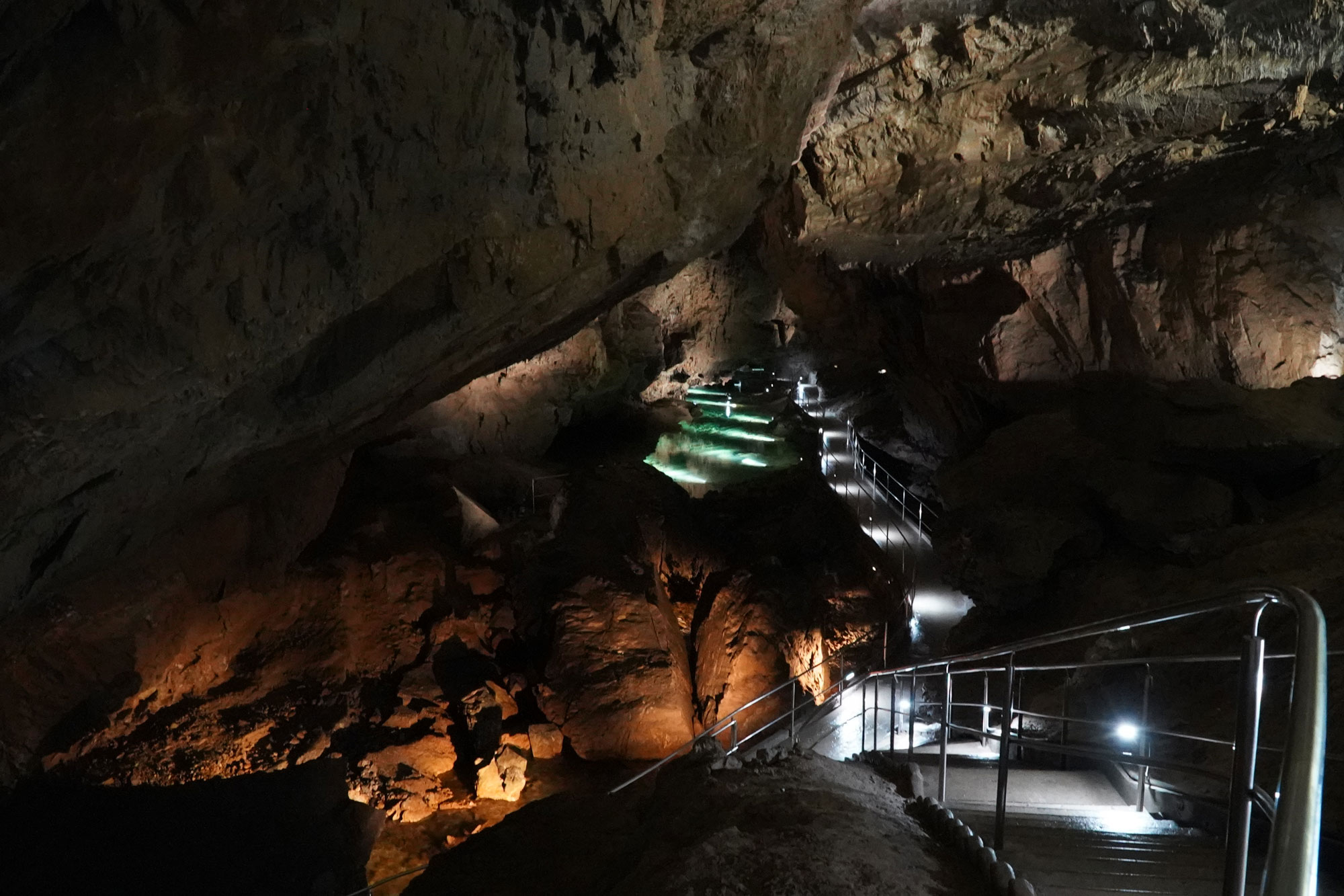 In March 2023, Cave Lighting team started the installation for the Liberty Cave, which presented a new set of challenges. Again, for this cave there is no direct access from the parking lot and the cave can be reached the entrance can be reached on a 400 m long path with elevation span of 67m. The cave itself is huge, the long tour path has a length of more than 2 kilometers, and you have to climb 1.118 stairs, making it a challenge in itself to reach the deeper parts of the cave and go back to the surface. The morphology of the cave is very diverse, with different galleries and halls, from low and narrow passages with delicate formations to huge galleries and domes of impressive size. Being such a large cave and with a very long touristic route, but beautifully decorated with almost every type of speleothems you can think of, one of the first challenges is choosing the points of interest that are to be highlighted, as it is impossible to illuminate everything, both from a logistical point of view and to avoid boredom and eye fatigue of visitors. Other specific challenge of this cave is the high humidity, relative air humidity going to 99 percent and a lot of water dripping from the walls and ceilings, including a permanent waterfall from the ceiling of one of the big domes (which was illuminated with several lamps placed directly under the waterfall). Combined with the ambient temperature, which is higher than in the Ice Cave but is not going over 6 – 7 degrees Celsius makes an interesting working environment. The lighting of the underground river that crosses the cave at the lowest level of the route and the impressive galleries crossed by it proved quite challenging as well, and in the big dome the continuous noise of the river over the huge space of the hall made communication between the team members almost impossible. Anyway, after almost 5 months of hard work the installation of the new luminaries by Cave Lighting team was finished in July 2023. In the following months the electrical connections were also made by the local electrician team from our partner Voltatech a.s. and the final programming of the tour lights and shows was completed in September 2023.